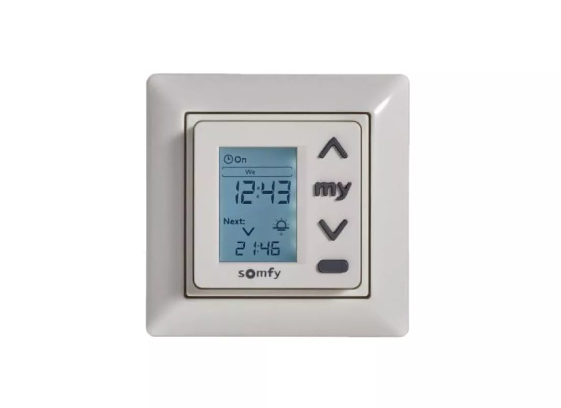 Die Somfy Chronis Uno 50x50 ist eine intelligente Zeitschaltuhr zur automatischen Steuerung von verdrahteten Antrieben wie Rollläden, Jalousien oder Markisen. Die Bedienung erfolgt intuitiv über vier benutzerfreundliche Drucktasten.