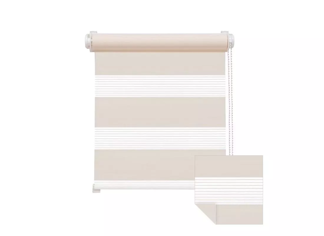 Das Zevra Doppelrollo ist eine innovative Fensterdekoration, die durch zwei übereinanderliegende Stoffbahnen mit abwechselnden transparenten und blickdichten Streifen besticht. Die stufenlose Regulierung des Lichteinfalls erfolgt über einen Kettenzug, der es ermöglicht, die Stoffbahnen gegeneinander zu verschieben. So schaffen Sie spielend leicht die gewünschte Lichtatmosphäre – von hellem Tageslicht bis hin zu sanfter Dämmerung oder leichtem Abdunkeln. Gleichzeitig dient das Zevra Rollo als effektiver Sichtschutz. In einer Vielzahl ansprechender Farben erhältlich, wird dieses Doppelrollo zum stilvollen Highlight in jedem Raum.